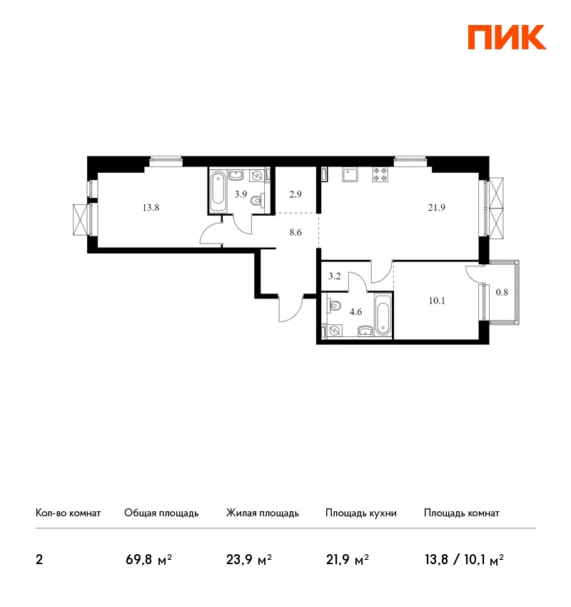 Продаётся 2-комн. квартира площадью 69,8 кв.м на 2 этаже 9 этажного дома (Корпус 1, Секция 1) проекта ПИК «Кантемировская 11». Светлый просторный подъезд на уровне земли, функциональная планировка, большие окна, c отделкой.